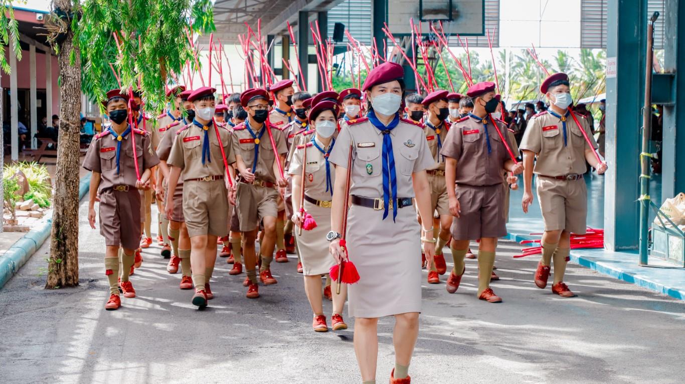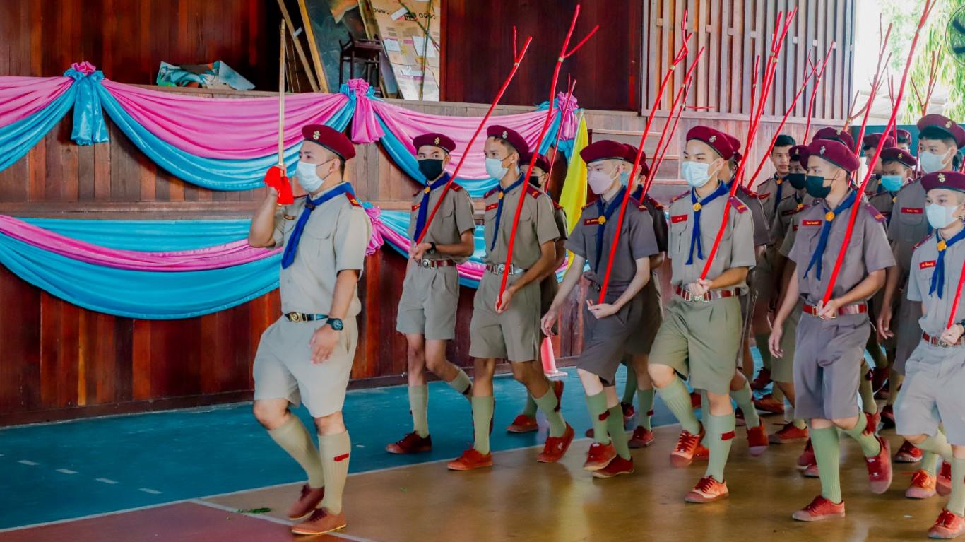 พิธีทบทวนคำปฏิญาณและการเดินสวนสนามของผู้บังคับบัญชาและ ลูกเสือ-เนตรนารี