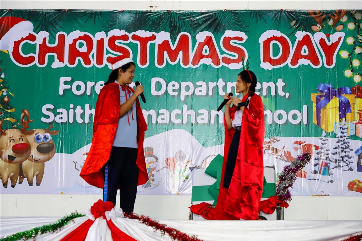 วันศุกร์ที่ 22 ธันวาคม พ.ศ. 2566 กลุ่มสาระการเรียนรู้ภาษาต่างประเทศ ดำเนินกิจกรรม Christmas Day โดยได้รับเกียรติจาก ดร.พงษ์ดนัย เดชเดชาโชติ ผู้อำนวยการโรงเรียนสายธรรมจันทร์ พร้อมด้วยคณะผู้บริหาร คณะครู และนักเรียนเข้าร่วมกิจกรรม ณ โดมอเนกประสงค์ โรงเรียนสายธรรมจันทร์ เพื่อส่งเสริมทักษะควบคู่กับกิจกรรมวันสำคัญต่างๆ เพื่อให้ผู้เรียนได้เรียนรู้วัฒนธรรมประเพณีของเจ้าของภาษา อีกทั้งยังเป็นการส่งเสริมทักษะด้านภาษาซึ่งสอดคล้องกับการจัดการศึกษาในศตวรรษที่ 21