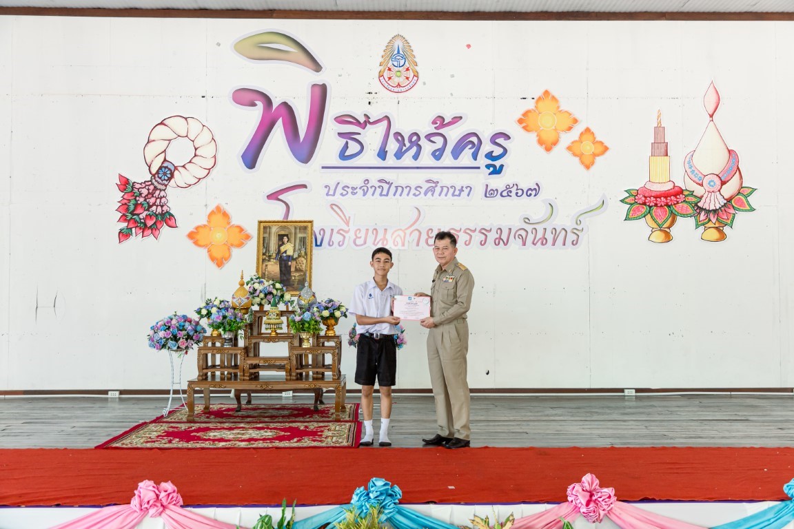 วันพฤหัสบดีที่ 13 มิถุนายน ๒๕๖๗ โรงเรียนสายธรรมจันทร์ ได้กำหนดจัดพิธีไหว้ครู ประจำปีการศึกษา ๒๕๖๗ โดยมี ดร.พงษ์ดนัย เดชเดชาโชติ ผู้อำนวยการโรงเรียน เป็นประธานในพิธี และมอบเกียรติบัตรให้กับนักเรียน ณ โดมอเนกประสงค์ โรงเรียนสายธรรมจันทร์ ระหว่างเวลา ๐๘.๐๐ – ๑๐.๒๐ น. โดยมีวัตถุประสงค์เพื่อเป็นการสืบทอด และร่วมปฏิบัติตามประเพณีไทยอันดีงามที่ถือปฏิบัติของการเริ่มการศึกษา