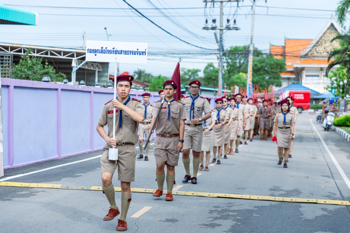 เนื่องจากเป็นวันคล้ายวันสถาปนาคณะลูกเสือแห่งชาติ โรงเรียนสายธรรมจันทร์ ได้กำหนดให้กลุ่มลูกเสือ - เนตรนารี ดำเนินกิจกรรมพิธีทบทวนคำปฏิญาณและสวนสนามของลูกเสือ ณ บริเวณสนามหน้าเสาธง เพื่อน้อมรำลึกถึงพระมหากรุณาธิคุณพระบาทสมเด็จพระมงกุฎเกล้าเจ้าอยู่หัว พระผู้พระราชทานกำเนิดลูกเสือไทย พร้อมเป็นการแสดงความจงรักภักดี ประมุขของคณะลูกเสือแห่งชาติ ในวันจันทร์ที่ ๑ กรกฎาคม ๒๕๖๗ เวลา ๐๘.๓๐ – ๑๐.๒๐ น. โดยมี รองผู้อำนวยการฝ่ายบริหารวิชาการ โรงเรียนสายธรรมจันทร์ ดร.ณัฐรินีย์ เจติยวรรณ เป็นประธานนำ กล่าวคำปฏิญาณและสวนสนาม