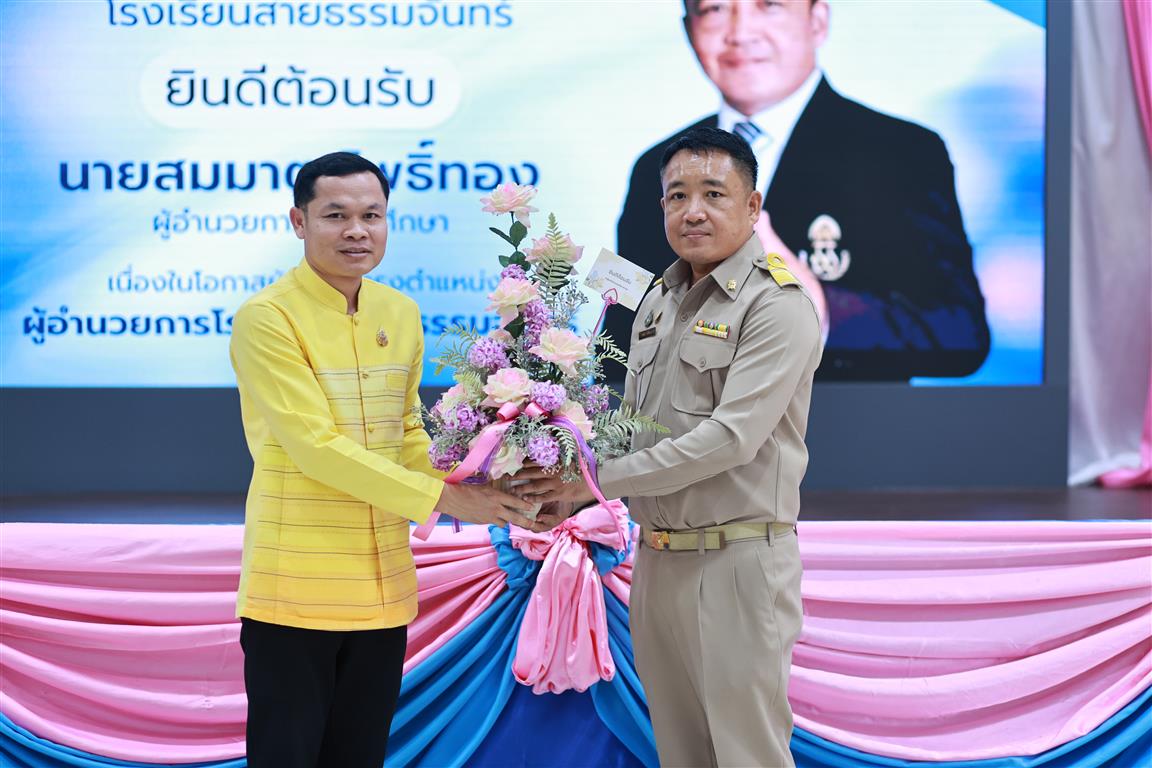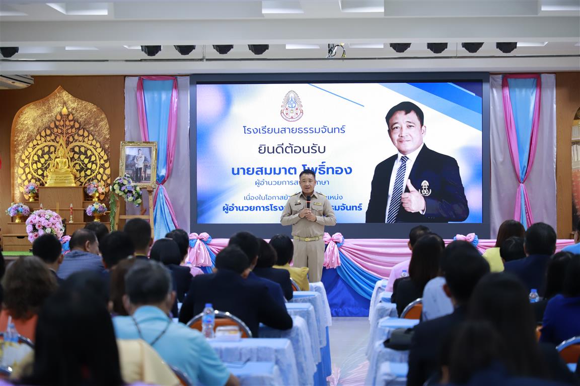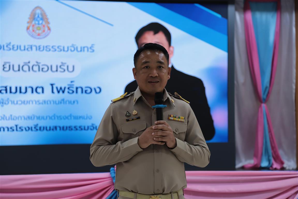 เมื่อวันที่ 8 ตุลาคม 2567 โรงเรียนสายธรรมจันทร์มีความยินดีเป็นอย่างยิ่งในการต้อนรับ นายสมมาต โพธิ์ทอง ที่ได้ย้ายมาดำรงตำแหน่ง ผู้อำนวยการโรงเรียนสายธรรมจันทร์ ท่านสมมาต โพธิ์ทอง เป็นบุคคลที่มีความรู้ความสามารถและประสบการณ์ทางการศึกษาที่หลากหลาย ซึ่งจะช่วยพัฒนาและยกระดับคุณภาพการศึกษาให้กับโรงเรียนสายธรรมจันทร์ได้อย่างแน่นอน คณะครู นักเรียน และบุคลากรของโรงเรียนขอแสดงความยินดีและพร้อมที่จะร่วมมือในการทำงานเพื่อพัฒนาโรงเรียนสายธรรมจันทร์ให้ก้าวหน้าและเติบโตอย่างยั่งยืนต่อไป