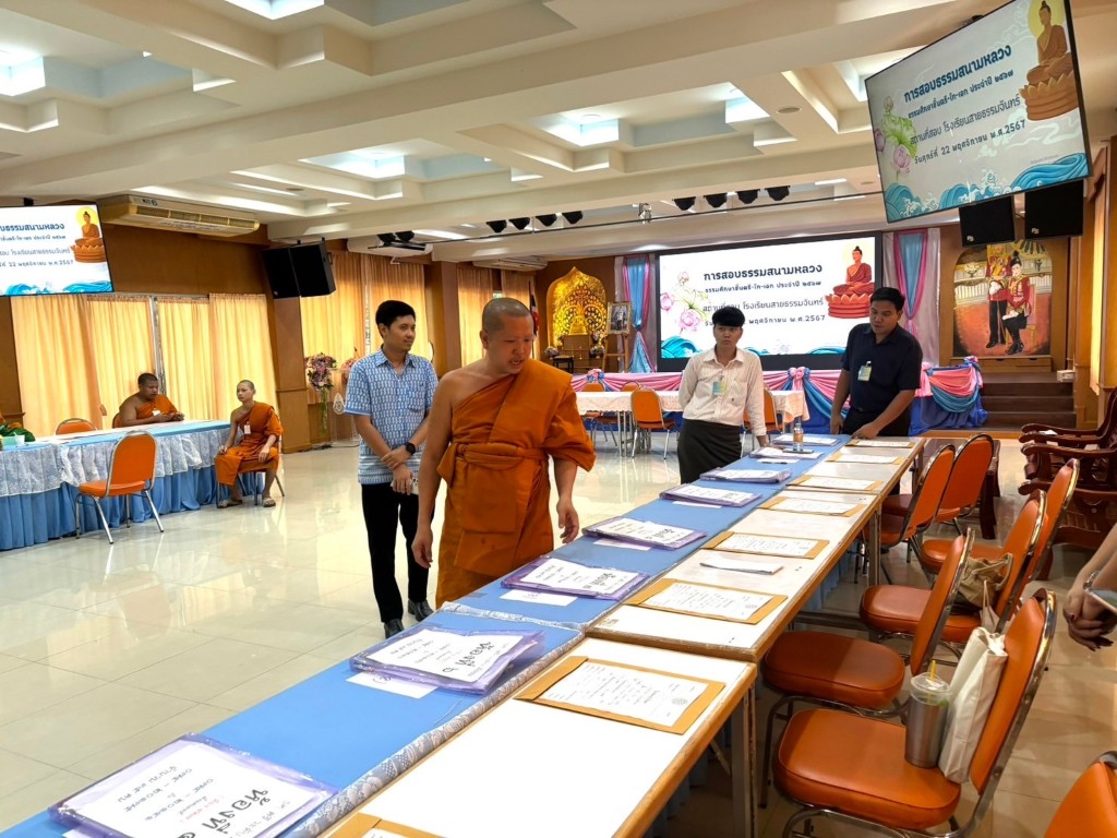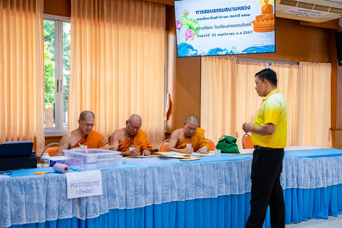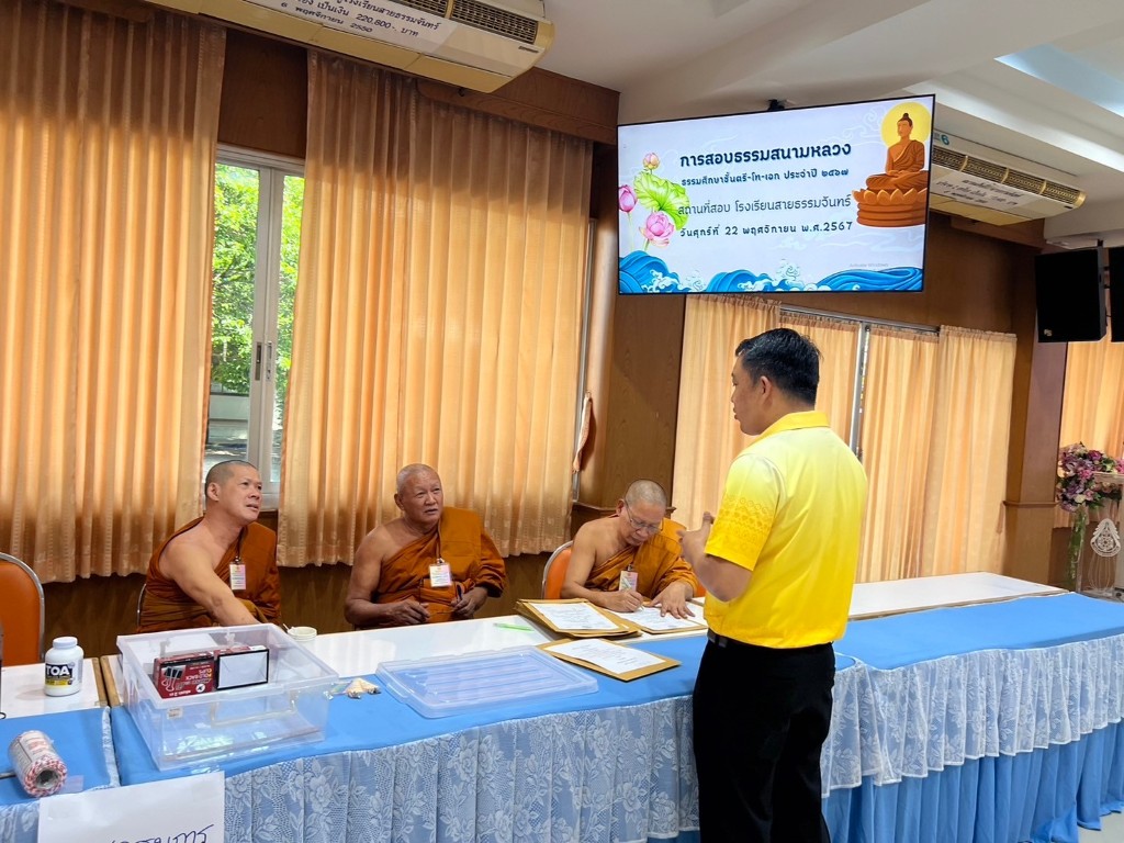 วันศุกร์ที่ 22 เดือนพฤศจิกายน พ.ศ.2567 นายสมมาต โพธิ์ทอง ผู้อำนวยการโรงเรียนสายธรรมจันทร์ ท่านรองผู้อำนวยการ และคณะครูร่วมกับสำนักงานแม่กองธรรมสนามหลวง ได้ดำเนินการสอบธรรมศึกษา ประจำปีการศึกษา 2567 ณ โรงเรียนสายธรรมจันทร์ โดยมีการสอบธรรมศึกษา ชั้นตรี โท และชั้นเอก ให้กับนักเรียนโรงเรียนสายธรรมจันทร์ เพื่อส่งเสริมคุณธรรม จริยธรรม และการมีคุณลักษณะอันพึงประสงค์ นักเรียนได้เรียนรู้และเข้าใจหลักธรรมทางพระพุทธศาสนา สามารถนำไปปรับประยุกต์ใช้ให้เกิดประโยชน์ในชีวิตประจำวันได้