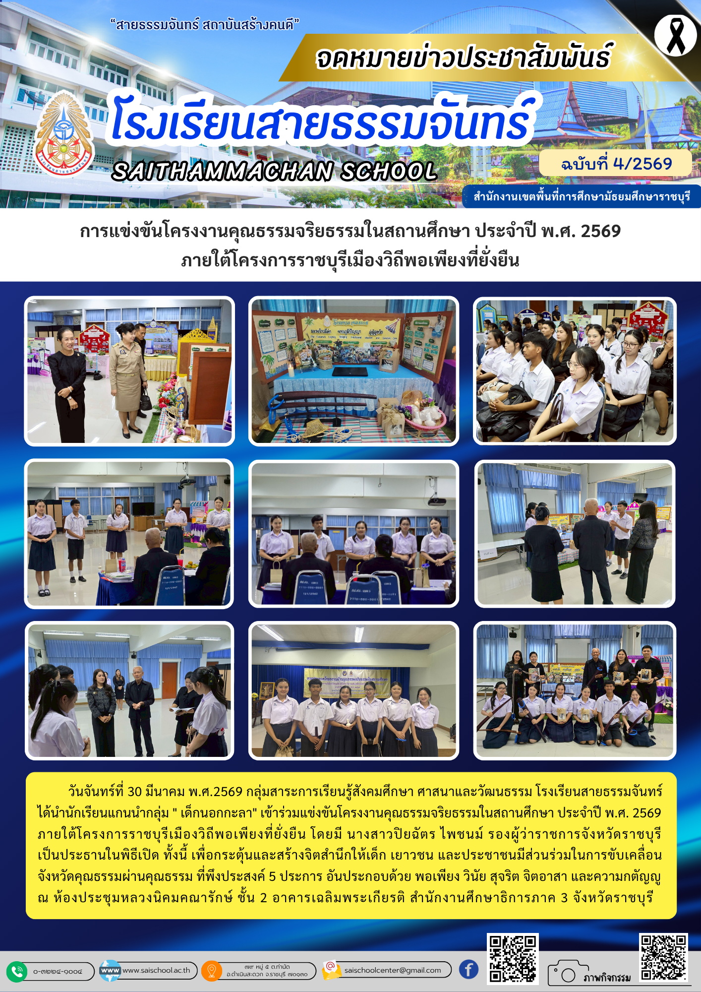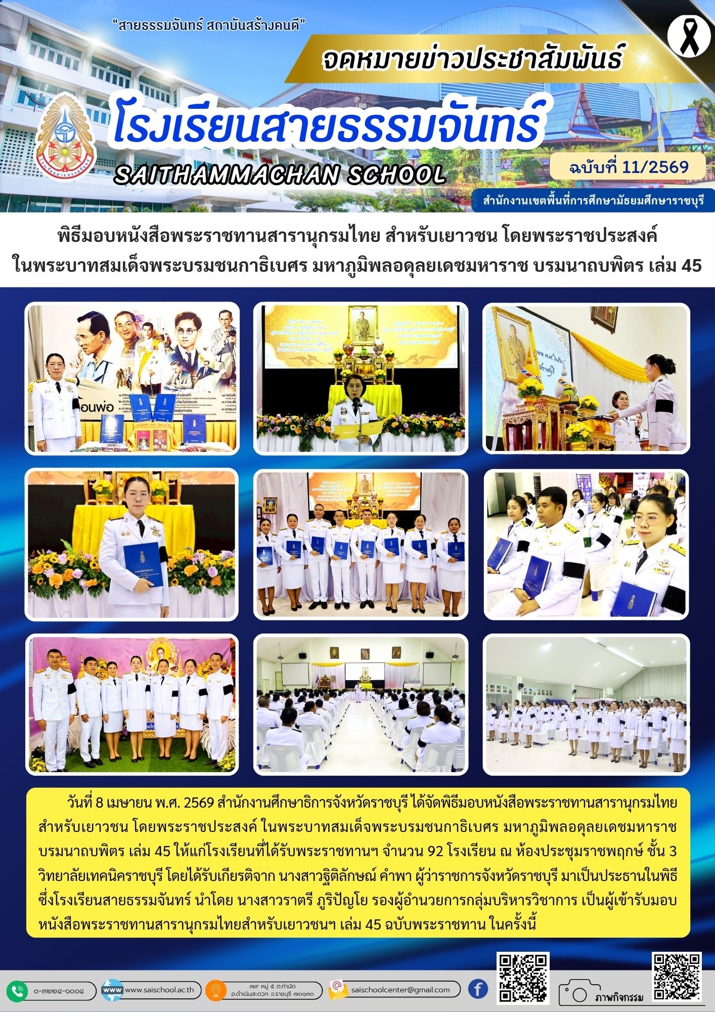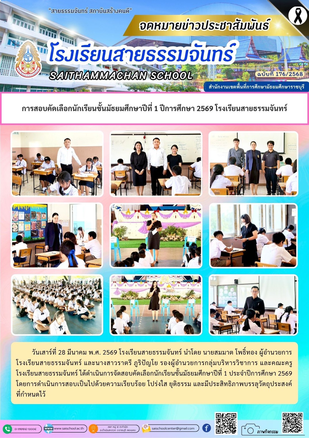 โรงเรียนสายธรรมจันทร์ ได้กำหนดจัดพิธีวันคล้ายวันสถาปนาโรงเรียน และพิธีเปิดป้ายสะพานทางเชื่อมระหว่างอาคารเรียน ในวันพุธที่ ๔ มิถุนายน ๒๕๖๘ โดยมี พ… (อ่านต่อ)