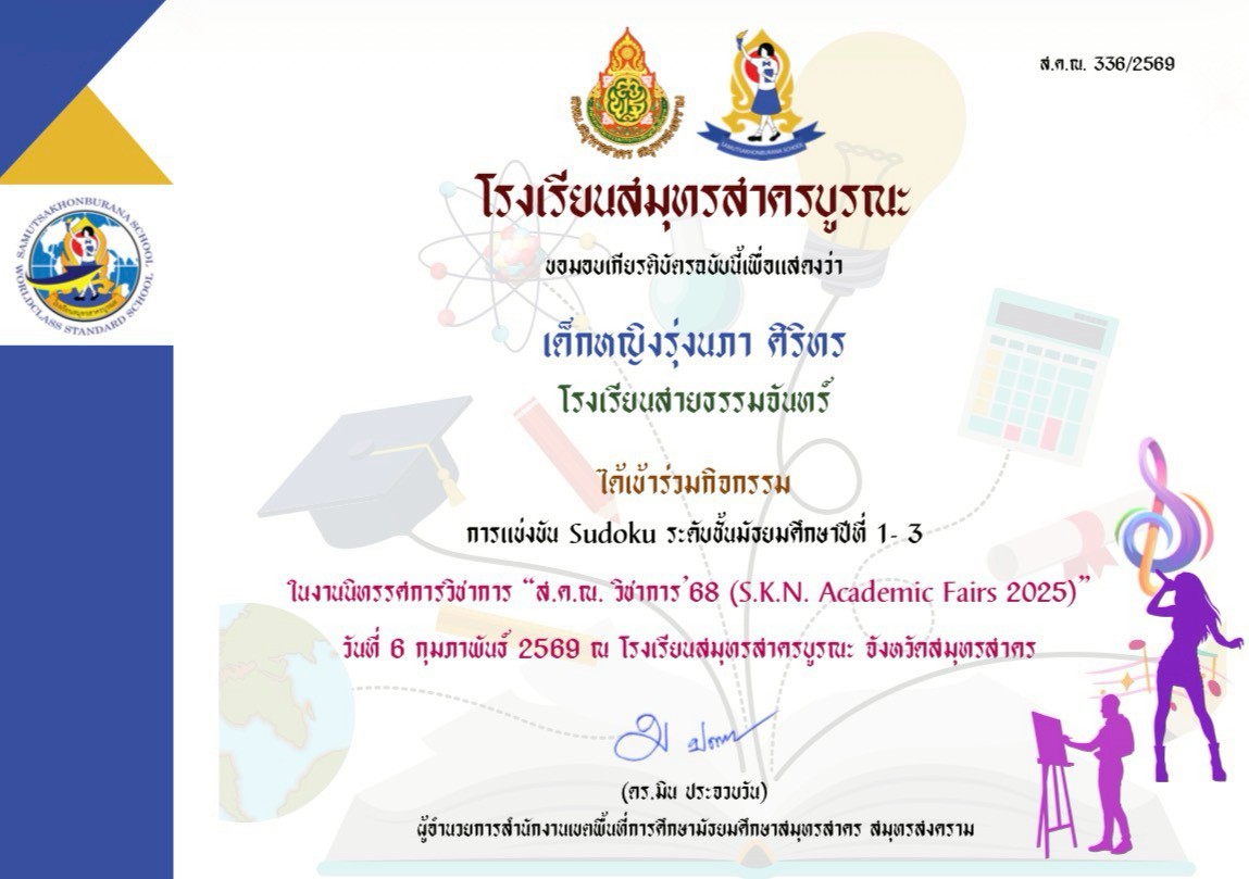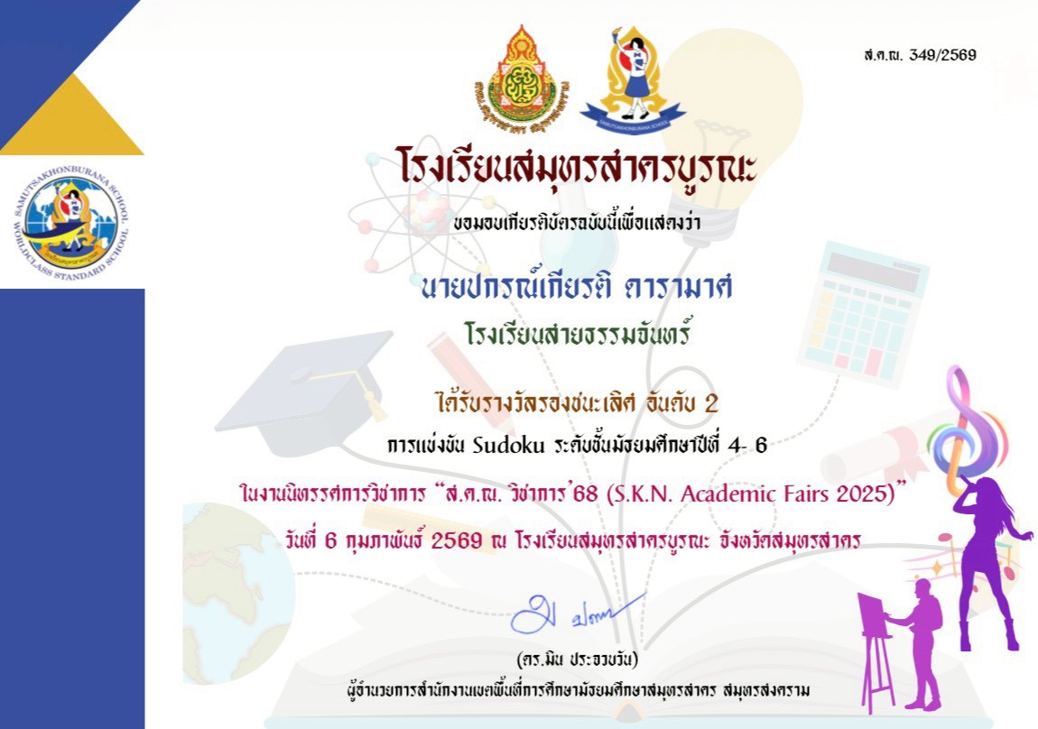 วันที่ 27 มีนาคม พ.ศ. 2569 โรงเรียนสายธรรมจันทร์ ดำเนินการจัดพิธีมอบประกาศนียบัตรแก่ผู้สำเร็จการศึกษา เพื่อแสดงความยินดีและเชิดชูเกียรติ… (อ่านต่อ)