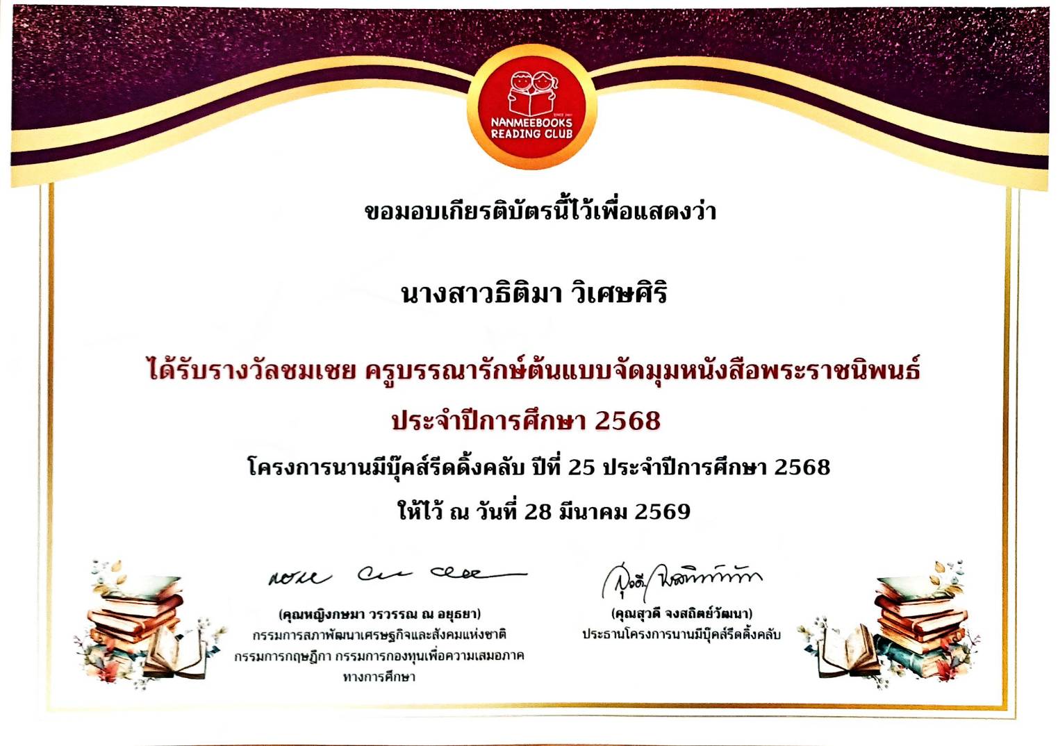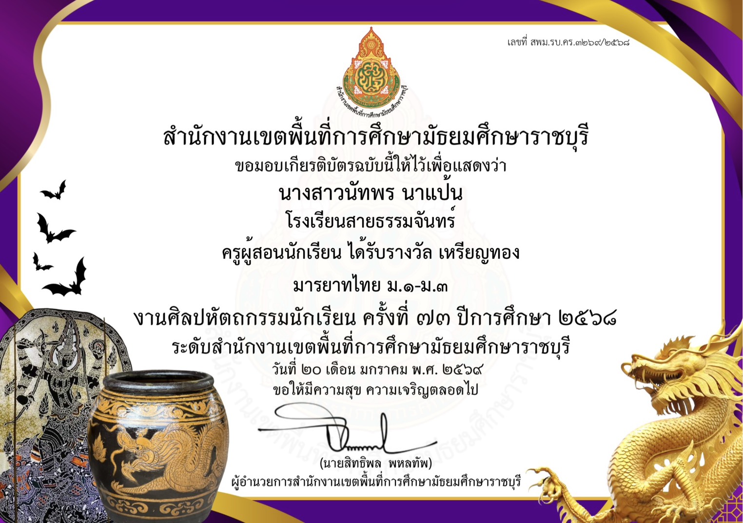 ผู้รายงาน: นางสาวณัฐรินีย์ เจติยวรรณ ตําแหน่ง รองผู้อำนวยการ โรงเรียนสายธรรมจันทร์ สังกัดสํานักงานเขตพื้นที่การศึกษามัธยมศึกษาราชบุรี ปีการศึกษา 2568