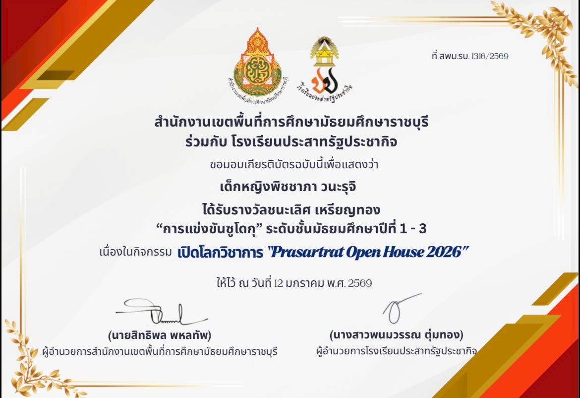 เด็กหญิงพิชชาภา วนะรุจิรางวัลชนะเลิศระดับเหรียญทอง การแข่งขันซูโดกุ ระดับชั้นมัธยมศึกษาปีที่ 1-3