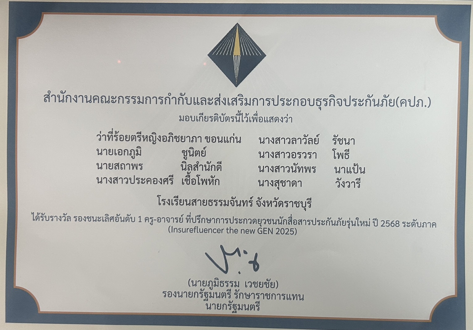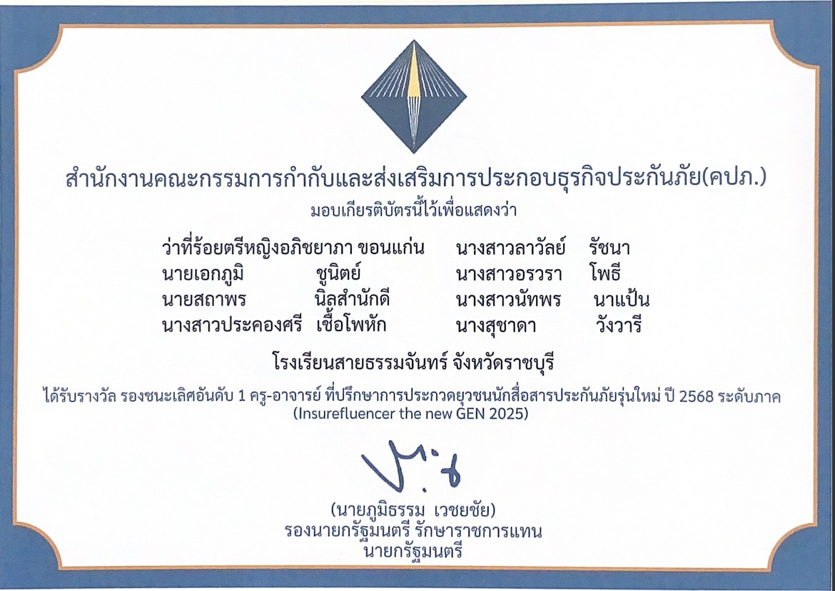 นางสาวอรวรา โพธีรองชนะเลิศอันดับ 1 ครู-อาจารย์ ที่ปรึกษาการประกวดยุวชนนักสื่อสารประกันภัยรุ่นใหม่ ปี 2568 ระดับภาค (Insurefluencer the new GEN 2025)