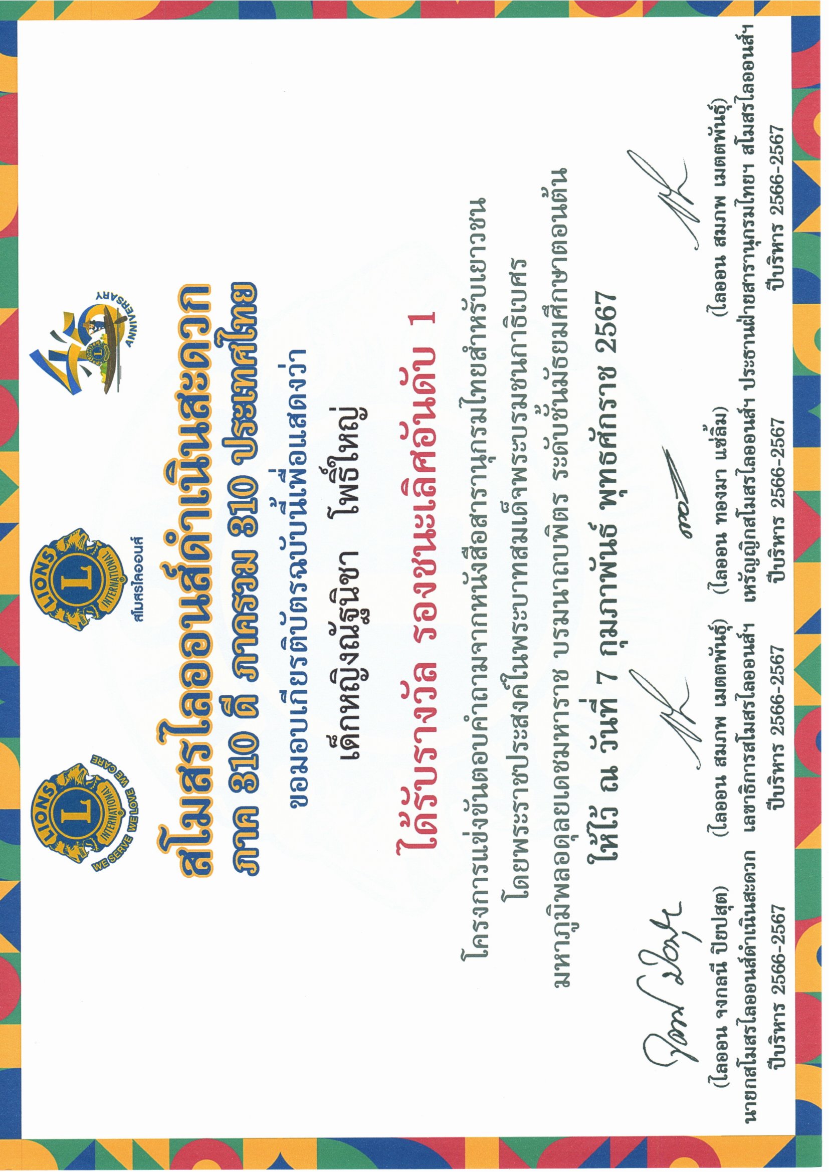 เด็กหญิงณัฐนิชา โพธิ์ใหญ่ได้รับรางวัล รองชนะเลิศอันดับ 1 การแข่งขันตอบคำถามจากหนังสือสารานุกรมไทยสำหรับเยาวชน โดยพระราชประสงค์ในพระบาทสมเด็จพระบรมชนกาธิเบศร มหาภูมิพลอดุยเดชมหาราช บรมนาถบพิตร ระดับการศึกษาขั้นพื้นฐาน