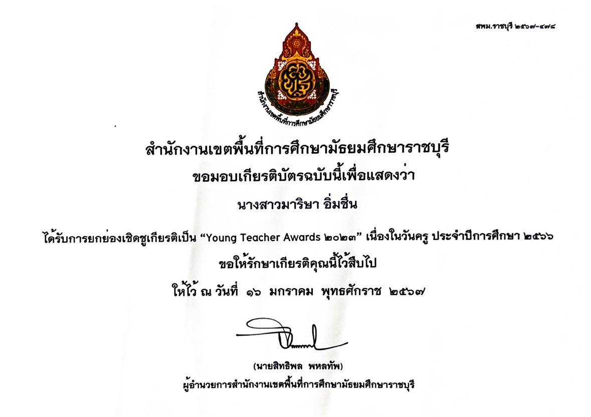 นางสาวมาริษา อิ่มชื่น"Young Teacher Awards 2023" เนื่องในวันครู ประจำปีการศึกษา 2566