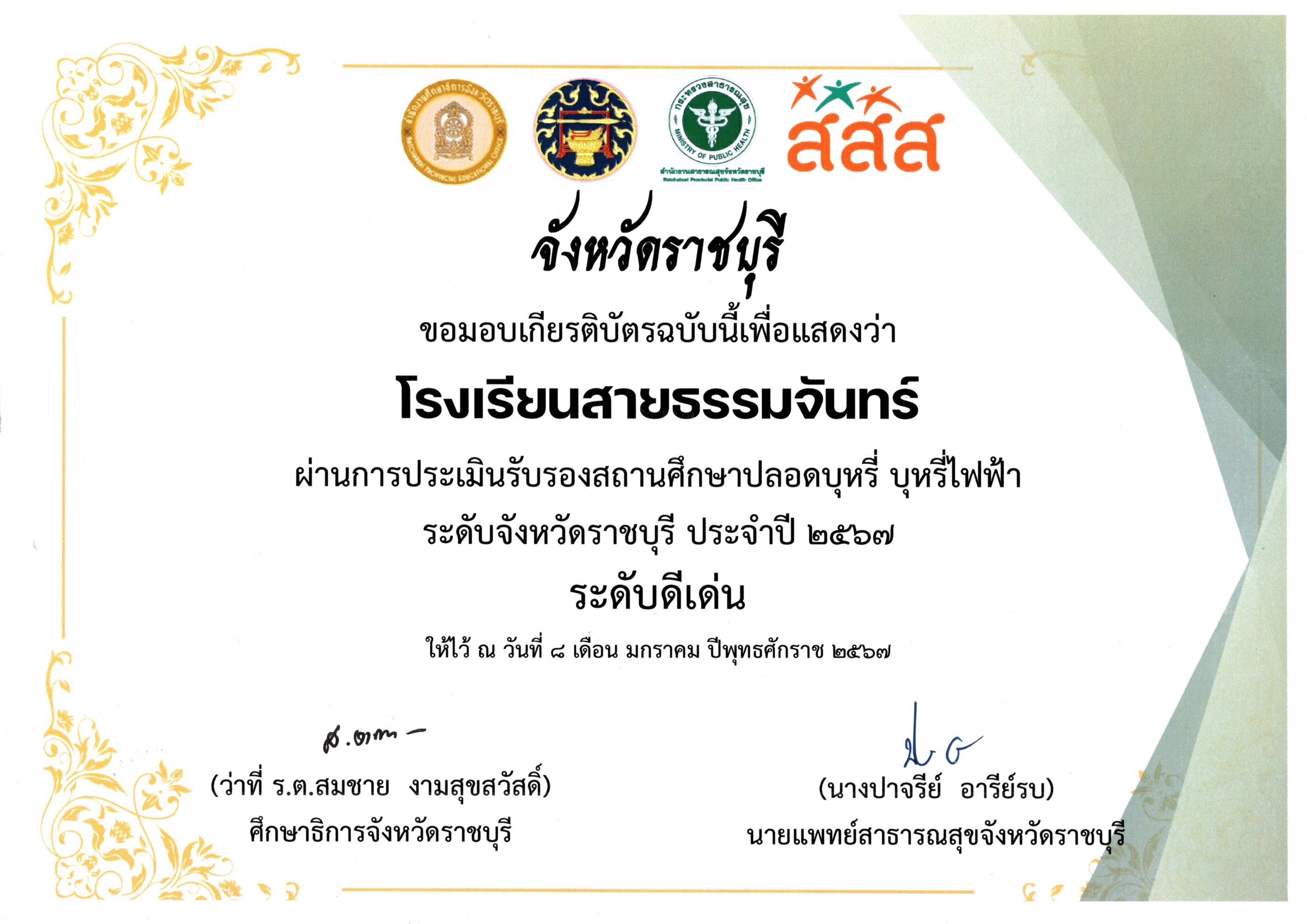 โรงเรียนสายธรรมจันทร์ผ่านการประเมินรับรองสถานศึกษาปลอดบุหรี่ บุหรี่ไฟฟ้า ระดับจังหวัดราชบุรี ประจำปี 2567